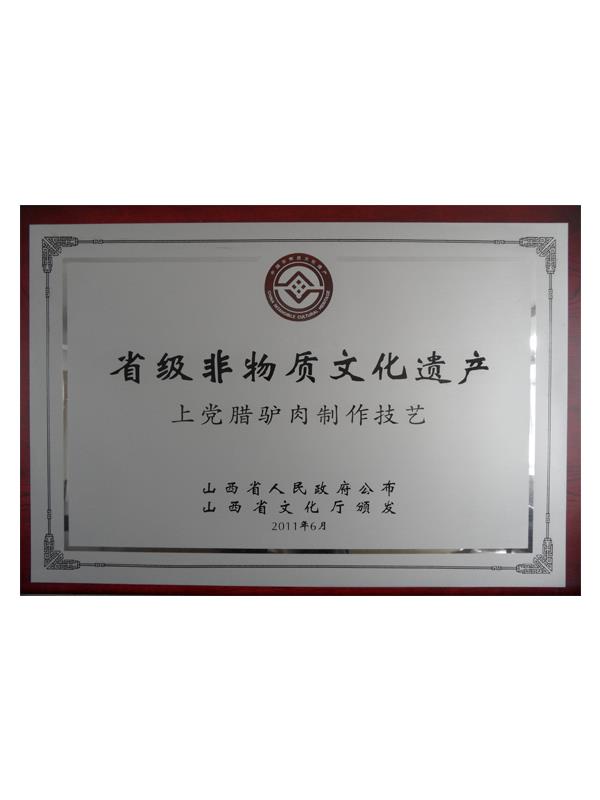 《本草綱目》第五十卷記載有:“驢肉味甘、無毒、解心煩、止風(fēng)狂、能安心氣、補(bǔ)血益氣、治遠(yuǎn)年勞損”的作用,尤其對(duì)失眠、健忘、眩暈、營養(yǎng)不良、貧血癥有獨(dú)特療效。上黨臘驢肉是山西長治市的漢族傳統(tǒng)名吃,其肉質(zhì)肥而不膩、瘦而不柴、香味四溢、回味無窮。早在明代,臘驢肉就已馳名于上黨和晉南地區(qū),產(chǎn)品遠(yuǎn)銷北京、天津、南京等南北名城。臘驢肉與當(dāng)?shù)氐臎龇邸⑺只馃环Q為潞安府(長治古稱潞安府)三寶。